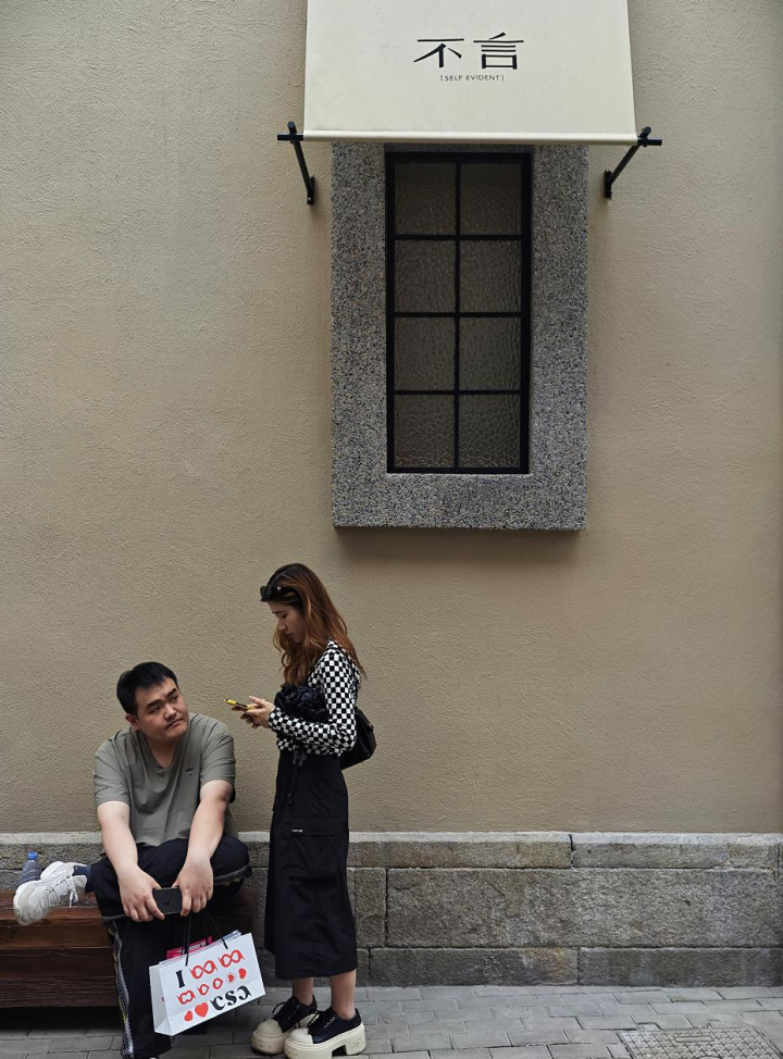 在喧嚣的街头,总有这样的“留白”角落,让人放慢脚步。“不言”二字仿佛在说:城市的故事,不只在热闹处,更在这些沉默的细节里。