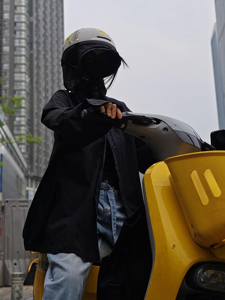 无论是外卖员、快递员,还是赶路的行人,他们的身影是城市快节奏的注脚。即使全副武装抵御风雨,也从未停下前行的脚步。