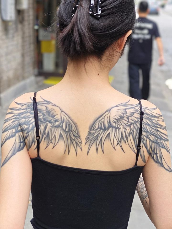 纹身不再是“异类”的标签,而是个性与自我的宣言。城市的包容,让每个人都能以自己的方式“绽放”,如同这对翅膀,带着自由的向往。