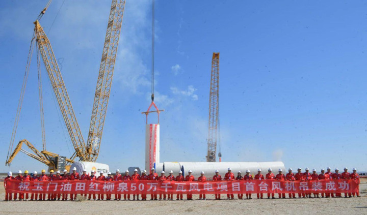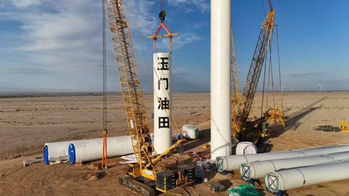 8月25日,中国石油玉门油田红柳泉50万千瓦风电项目建设现场取得重大进展配资之家门户,T055号风机顺利完成吊装并精准就位,标志着该项目首台风机吊装圆满成功,正式拉开风电组装序幕。