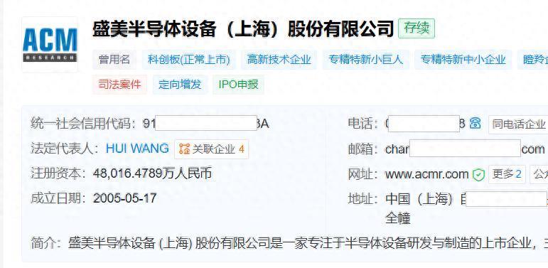 天眼查显示,盛美上海成立于2005年5月,位于上海市浦东新区,2021年11月在上交所科创板上市,专注于半导体专用设备的研发、生产和销售,生产产品包括半导体清洗设备、半导体电镀设备、先进封装湿法设备、硅材料衬底制造工艺设备等,2025年被认定为国家制造业单项冠军企业。