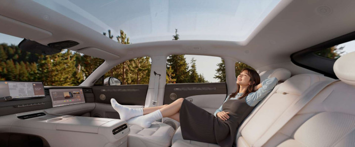 座舱体验上,新一代智己LS6也尽显豪华与贴心。90%的同级最大得房率,搭配全平后排地板,让后排乘客拥有“翘腿坐姿”的宽敞空间;“超级右排”副驾座椅支持三种调节模式,可切换至“休憩模式”实现半躺状态,搭配同级最大11L双开门冰箱、电动遮阳帘,营造出堪比航空头等舱的舒适感。此外,IM随心贴、副驾手套箱挂钩等细节设计,既方便放置手机、零食等小物件,又避免物品滑落,让日常用车更显温馨。